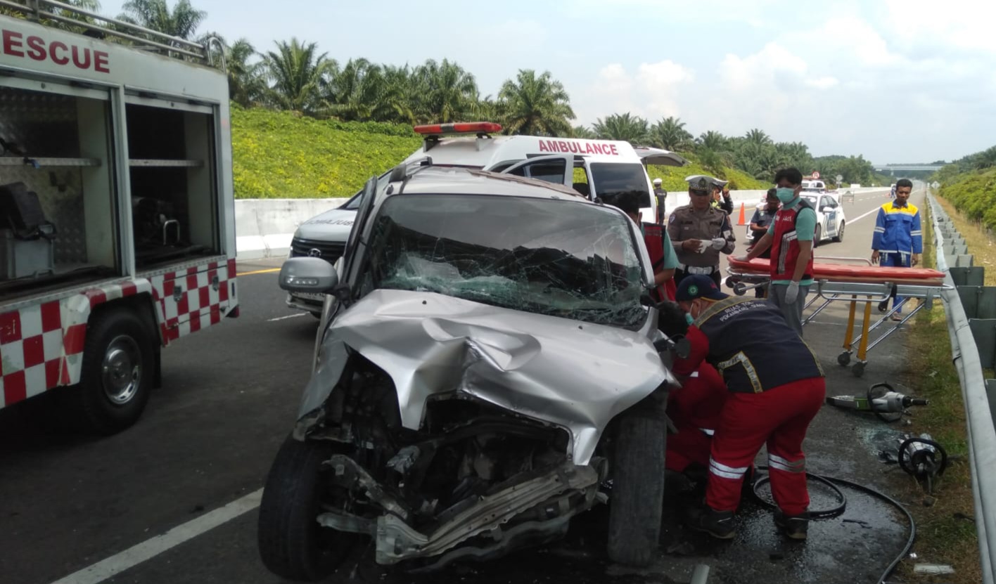 PEKANBARU (serangkai.co) – Kecelakaan maut kembali terjadi di Jalan Tol Pekanbaru-Dumai. Seorang ibu rumah tangga (IRT), Irma (45) meninggal di tempat setelah mobil Daihatsu Terios yang ditumpanginya menabrak truk Hino yang parkir di bahu jalan, Minggu (19/4/2026), sekitar pukul 13.40 Wib.